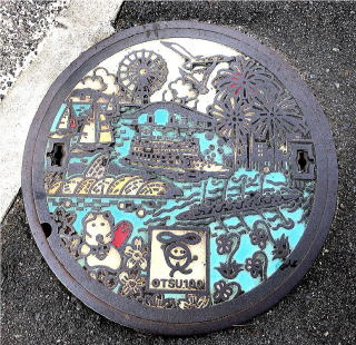 その 3 下水道事業の更なる推進と 市の観光行政 のPRを目的に 大津市制100周年キャラ クターから 各キャラクターにリニューアル された その1と比べて観覧車が「ホール まん蔵」に 左下の犬が「おおつ光ルくん」 に下の100周年ロゴが市下水道局のロゴ に変わっています 撮影日;2017年12月8日 撮影場所;淡海(オウミ)環境プラザ館内 提供者;妹夫婦 S・H さん |