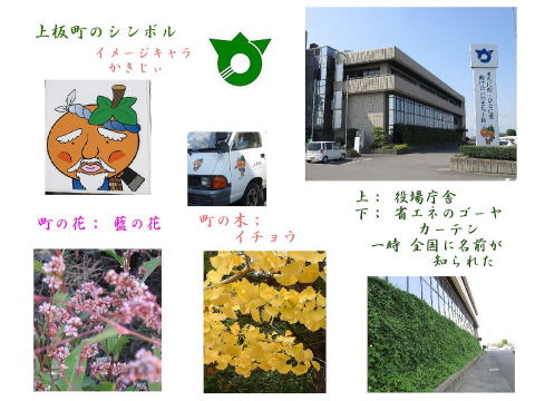 その 1 町章を中心に 町の木;イチョウ の葉を幾何学模様の中に取り 入れたデザイン 下に管理者名と識別文字を配 したデザイン 撮影日; 2013年5月14日 撮影場所; 上板町 七条 上板町役場前