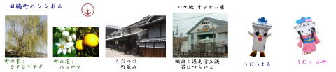 その 1 江戸中期 藍で栄えた町で 豪商が 家運の隆盛を誇示の象徴として 「うだつ」を造った それが今なお 当時の隆盛を物語っておる この街並みは 「日本の重要伝統的 建造物群保存地区」に選定されて いる デザインはこの街並みと 町の木; シダレヤナギを描いたカラー版 撮影日; 2017年8月21日 撮影場所; 穴吹浄化センター内 |