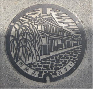 その 3 その 1 と同じデザインのモノクロ版 左下の地区名がその 2 と違い わきまち が 別所浜 になっている 撮影日; 2010年9月21日 撮影場所; 脇町 岩倉中学校 東側道路 |