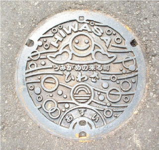 その 1 美波町の大浜海岸は 「赤ウミガメ」 の 上陸産卵地として県内外に知られて おり 町をあげて夏になると保護 管理 されておる デザインも可愛いアカウミガメを描いた ものでした 私もこのデザインの魅力にひかれ マン ホールのデザイン収集にとりつかれた 撮影日; 2009年5月4日 撮影場所; 美波町 奥河内 役場前 県道25号沿い