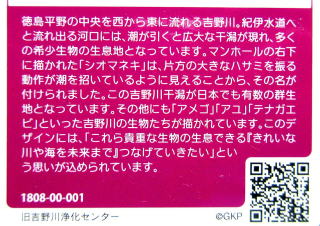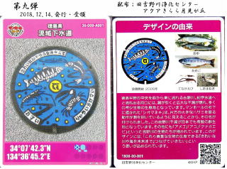 その 4 マンホールカード発行に伴って作成された その 1 と同じデザインのカラー版 撮影日; 2017年12月14日 撮影場所; 旧吉野川浄化センター内 ポンプ棟屋内