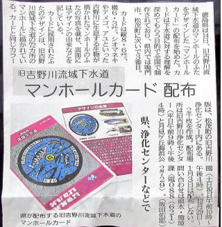 その 5 マンホールカード発行に伴って掲載された 地元新聞記事 「徳島新聞」 2018.12.14.記事