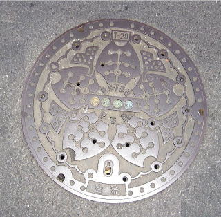 管理番号等を配したコンクリート製の蓋