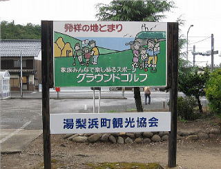 その 1 高齢者の生涯スポーツとして この地 で考案された「グランドゴルフ」 誰でも 簡単に取り組んで 楽しむことが出来る スポーツとして人気がある 近くには 日本海を見下ろす風光明媚なグランド ゴルフの里 「潮風の丘とまり」 がある 撮影日; 2012年8月28日 撮影場所; 山陰線 泊駅前 広場 |