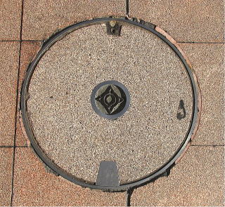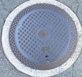 一般家庭と本管を繋ぐ鉄製のマンホ