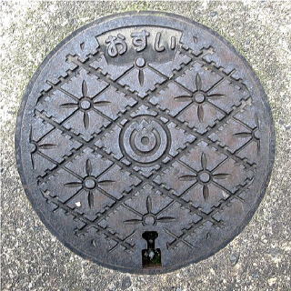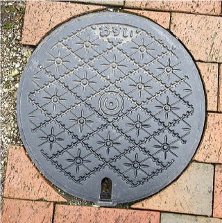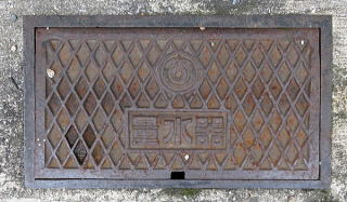 その 3 その 2 と同じデザイン 蓋の背景模様の ひし形の数が多い 撮影日; 2016年4月4日 撮影場所; 湯田温泉街の一般の道路