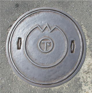 その 4 市章を蓋全体に描き 市章の内側に下水 道の「下」を配したデザイン 結構古い時に制作されたものか 撮影日; 2015年10月8日 撮影場所; 瑠璃光寺前の駐車場付近
