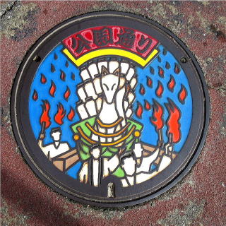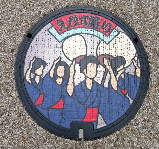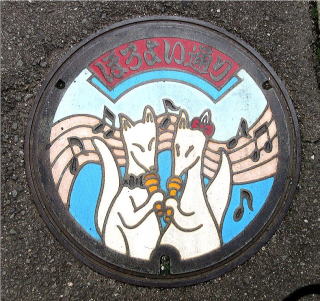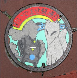 その通りにはデザインマンホールが多く設置されていました