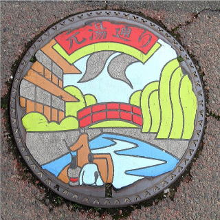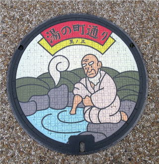 和尚さんが屋根付きの温泉でノンビリ入湯