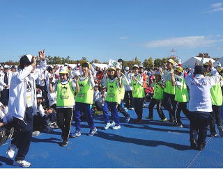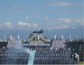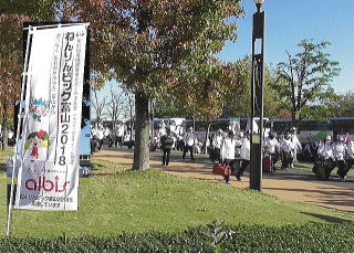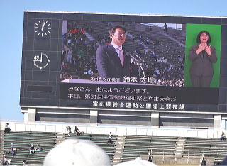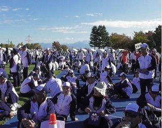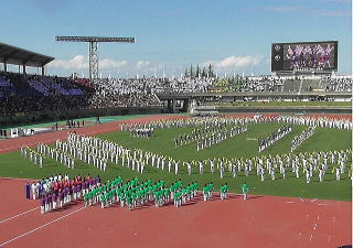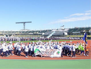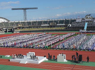 | 総合開会式場の 富山県総合運動公園 に 全国からの選手が集まってきました |