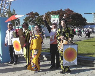 ゴール後 昼食を兼ねての休憩中 地元の伝統芸能の披露 |