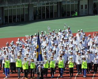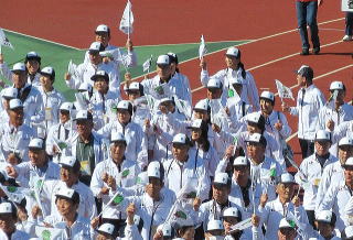 | 総合開会式を終えて 各部門の競技会場に向かう皆様 | |
