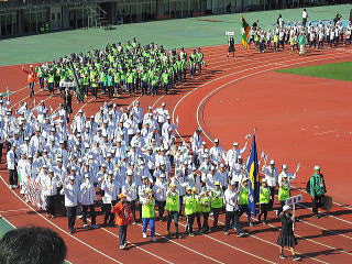 総合開会式を前に全国各地からの選手が待機してました |