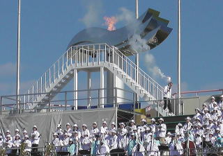 | メーンスタンドに炬火(キョカ)の点火 | |