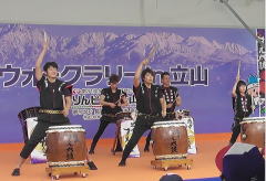 | 開会式前 伝統芸能「立山権現太鼓」 が披露された 神事やお祭りの 初めに披露されるとの事 |