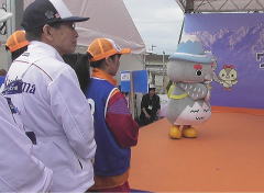 | 立山町 グリーンパーク吉峰会場 | 会場入り口には地元の小学生が 描いた応援ポスターが貼られていた |