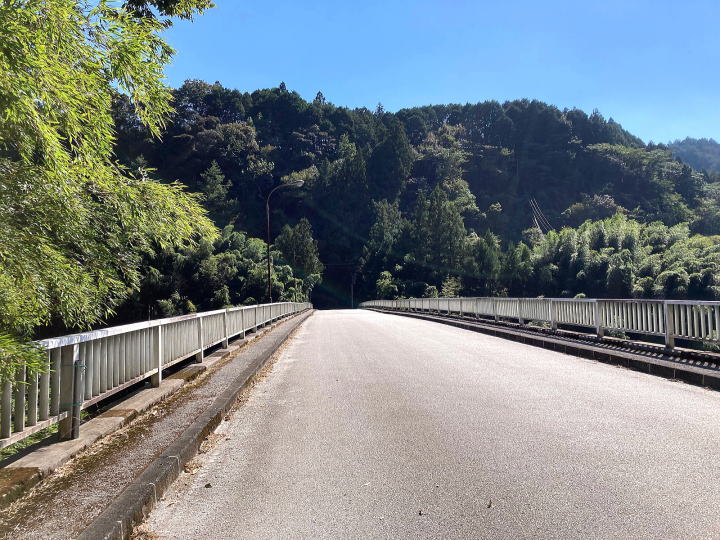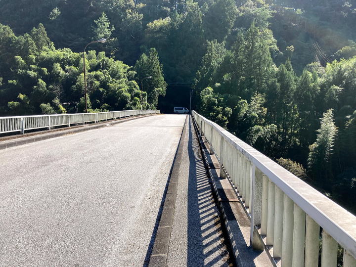 木々や藪が生い茂った場所に架けられた橋で全景の撮影が