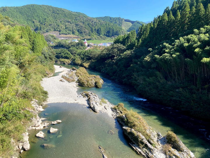 橋上より下流側を望む 岩と清流が綺麗な吉野川