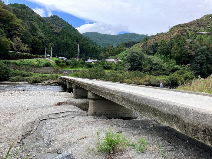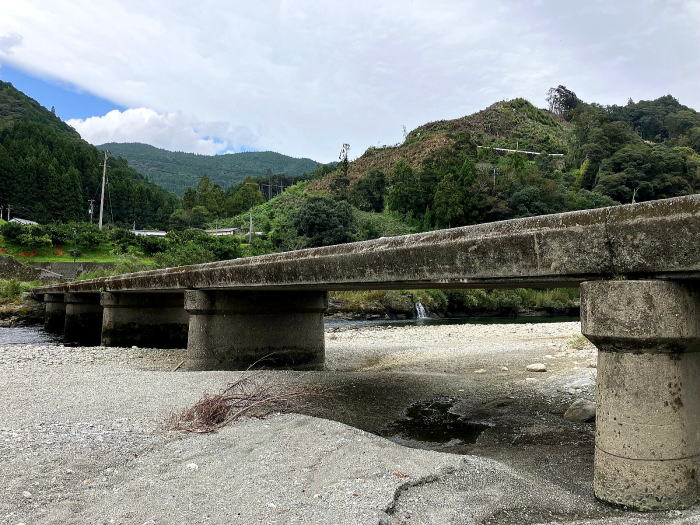 吉野川に架る最も上流に有る沈下橋 本山町市街地と