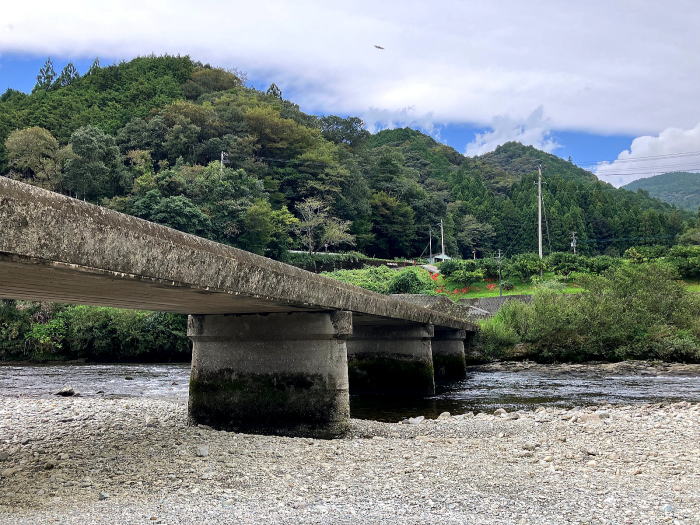 右岸側の橋下流川原より左岸側を望む 赤い彼岸花が見える