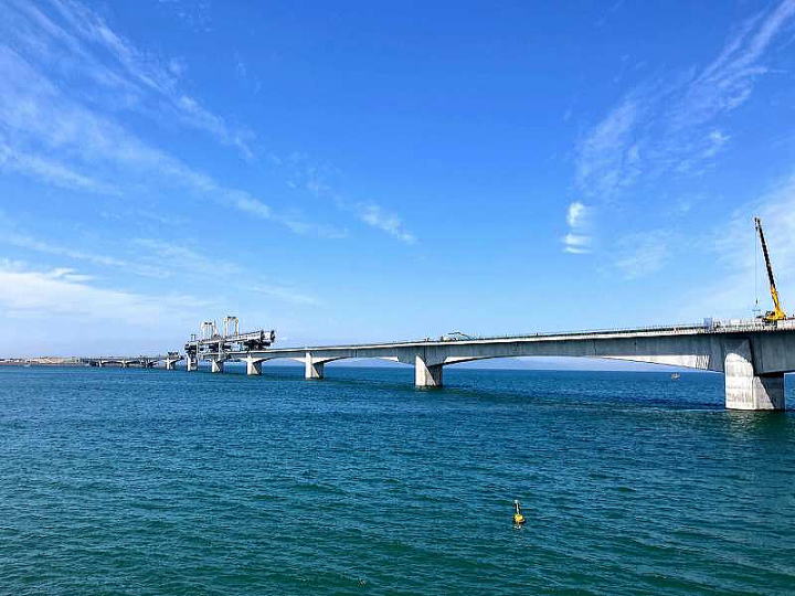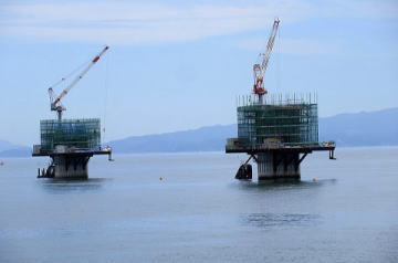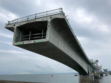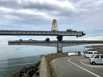 右岸より橋梁接続完了真近の大橋