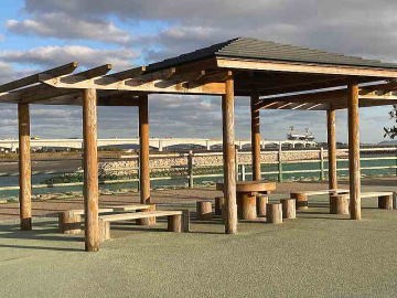 遠くに淡路島を望む 公園の東屋から