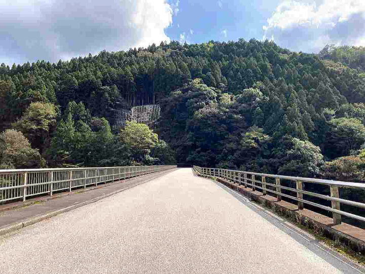 山間部の渓谷に架かる橋で 地味な鋼桁橋