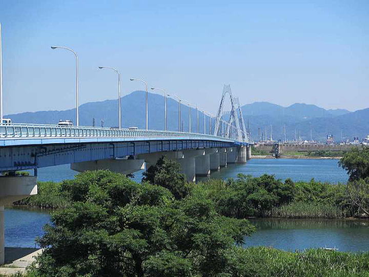 ・ 路線名; 県道徳島北灘線 ・ 上部工形式; 斜張橋 + 鋼桁橋
