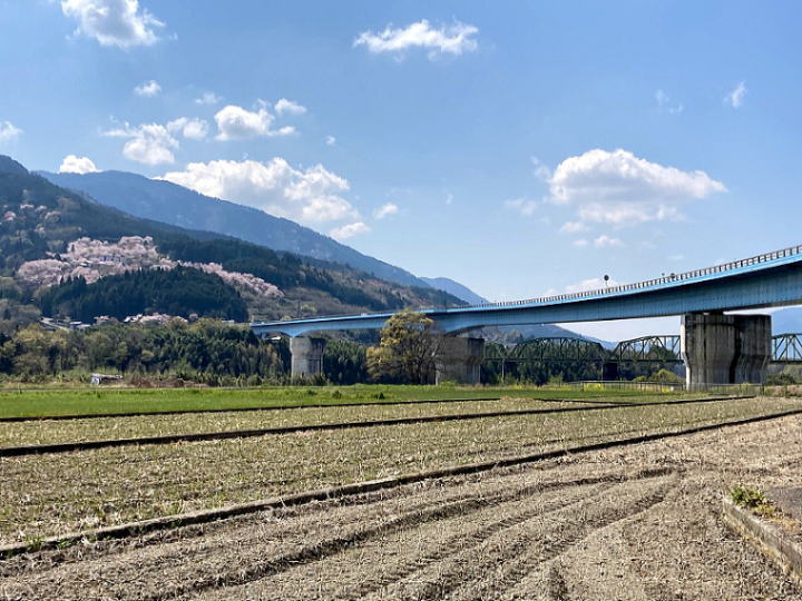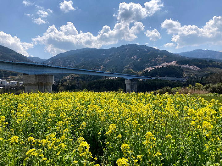 菜の花畑に浮かぶ 「吉野川橋」左岸上流側より