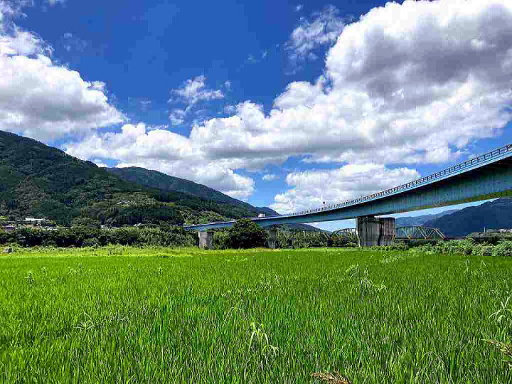 よく映える橋 ゆるやかにS字カーブで吉野川を跨ぐ風景は絶景