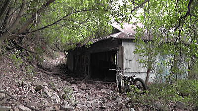 | 線路東側 ここから国道32号線に出る事が 出来るが 道は坂がきつく浮石が多いので注意 廃屋とバイクの野ざらし放置ががいかにも 秘境駅らしさを物語っていた |