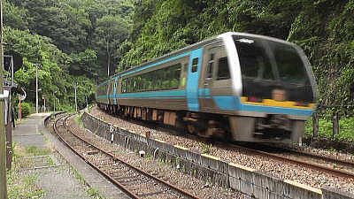 この場所には似つかない 特急列車 南風号が スイッチバックせず一気に急坂を登ってきた |