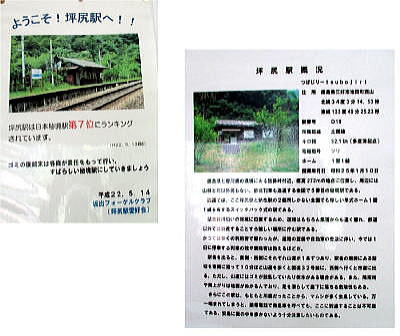 | 坪尻駅の概況が書かれていた 坪尻駅は 秘境駅ランキングのベスト7 に選ばれていた 平成22年5月 2017年度版年では5位になっていた |